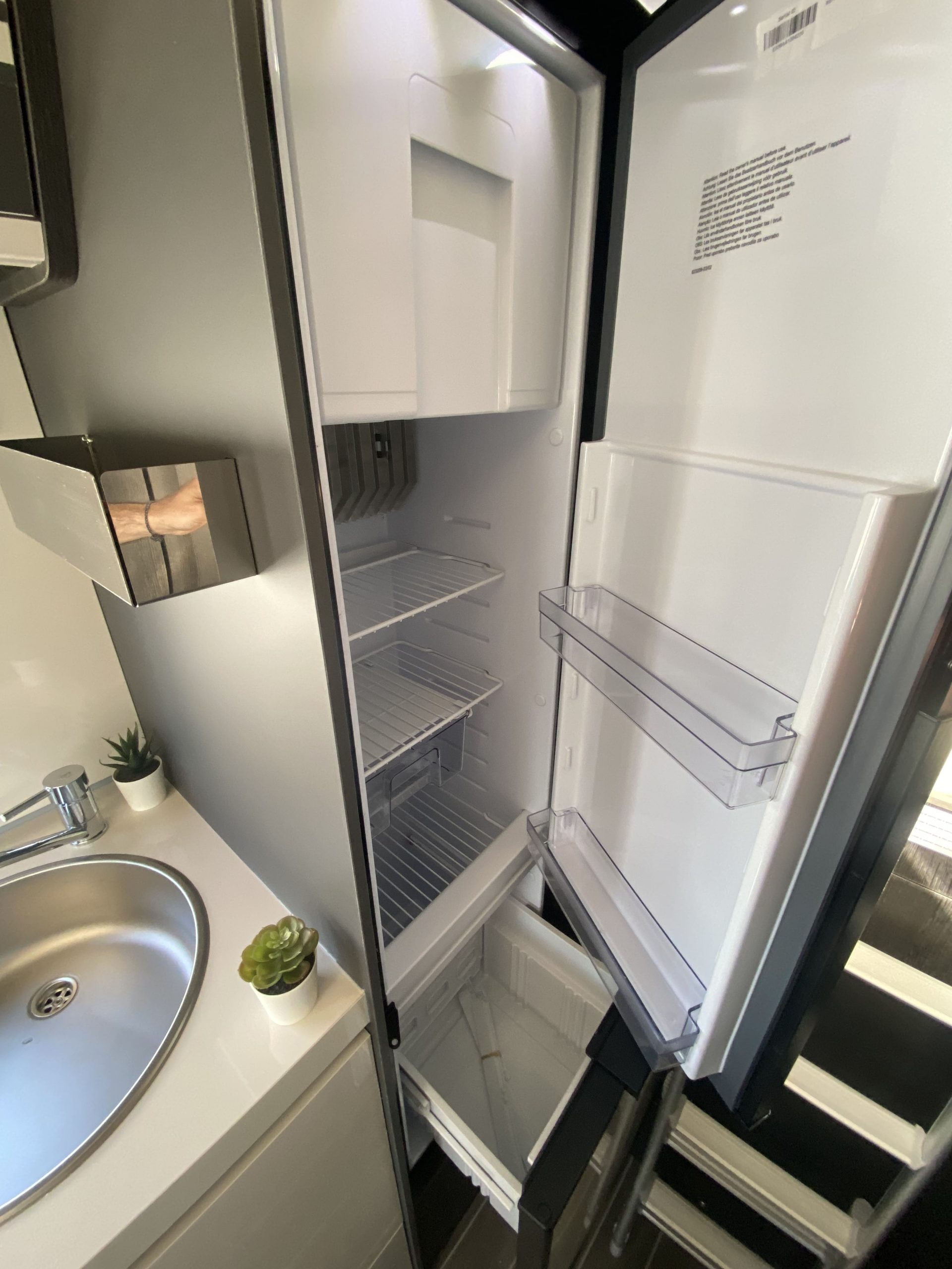 - Cocina: fregadero, nevera de 140L con congelador, utensilios de cocina.