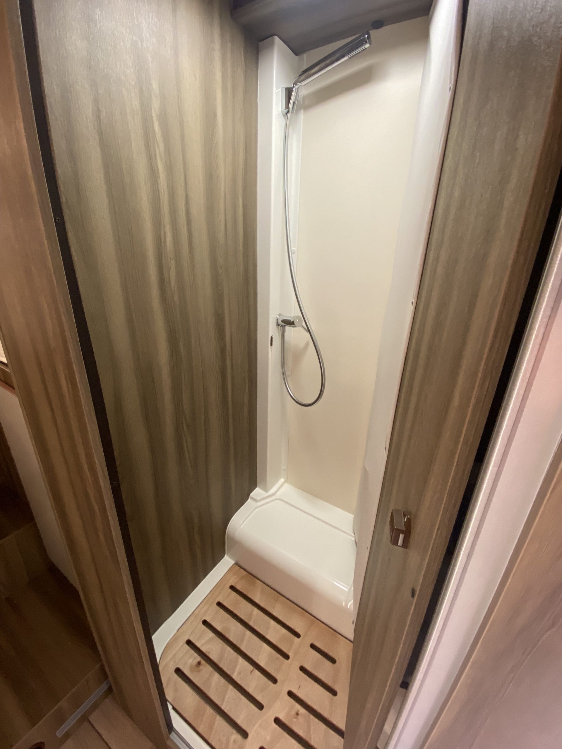 - Equipo multimedia con bluetooth, gran salón, cama trasera transversal de matrimonio 140×200 (opción de cama extra en formato litera con las mismas medidas), la segunda cama esta fija en la parte delantera y es de 160×200, opcional cama adicional convertible en salón. Cuarto de ducha separado del aseo asientos delanteros giratorios.